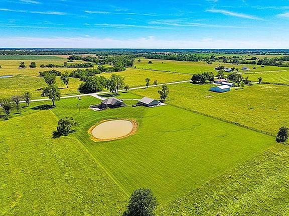 All brick ranch with walkout basement on blacktop road. Huge covered Trex deck with pond view in back. Sits on approx. 5 acres.