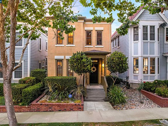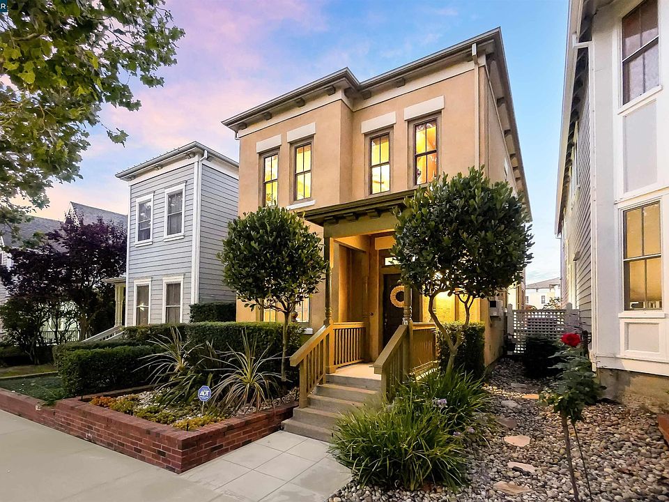 Introducing the Italianate Model in the coveted Promenade Waterfront community – a home where sophisticated design meets tranquil waterfront living. This 2,040 sq ft, 4-bedroom, 2.5-bath residence features a designer kitchen with stainless-steel appliances, quartz countertops, custom copper sink, breakfast nook with coffee bar, and upgraded cherry wood cabinetry which is carried throughout the entire home. Enjoy a spacious great room, a master bath with oversized jetted tub, high-efficiency dual-zone HVAC with ceiling fans, and owned solar. Outdoors, the drought-tolerant landscape pairs beautifully with serene water views, the community’s newly completed Bayfront trails, and excellent parks within a few minutes walk. With its remarkably low $15/month HOA, built-in security system, and walkable access to local favorites like Powder Keg, Leila by the Bay, and Hizcafe, this home offers the perfect blend of elegance, comfort, and lifestyle topped with undeniable CHARM!