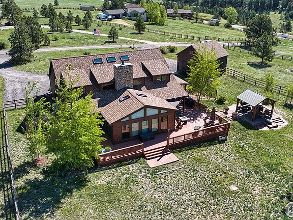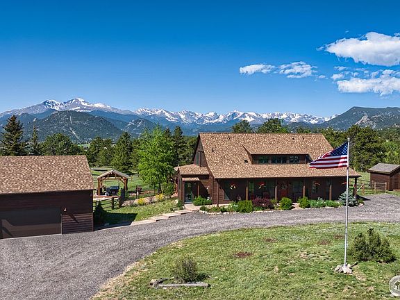This exquisite 3-bedroom, 4-bath luxury home in Estes Park, CO offers the perfect blend of mountain living and modern amenities. Set on 2.5 acres, the home provides breathtaking, panoramic views of the Continental Divide, Longs Peak, and Twin Sisters. Enjoy outdoor living at its finest with a wraparound deck, hot tub, and a charming gazebo-each offering unmatched views of Longs Peak. Inside, the great room is a showstopper, featuring a stunning river rock fireplace and chimney that provide both warmth and visual appeal. The media room, complete with surround sound, and more mountain views, is perfect for entertaining or quiet nights in. For the culinary enthusiast, the chef's kitchen is a dream. With an island, gas range, double oven, wine fridge, and expansive counter space, it's an ideal spot for cooking and entertaining guests.The main level hosts the primary suite, which boasts a spacious walk-in closet and a luxurious bathroom for ultimate comfort. Upstairs, you'll find two additional bedrooms, each with an en-suite bathroom. Between the bedrooms is a large loft area, offering ample space for an office, workout area, or reading nook. Additional features include in-floor radiant heat, a whole-house audio system, and a whole-house humidifier, ensuring year-round comfort. Outside is a oversized two-car garage with a second floor designed for storage. There is also a shed for all your outdoor equipment and a designated RV parking space. The sellers have also taken the proactive step of completing a pre-listing inspection and replaced the roof in 2024.This home truly embodies luxury mountain living-don't miss your chance to own this one-of-a-kind property in the heart of Estes Park!