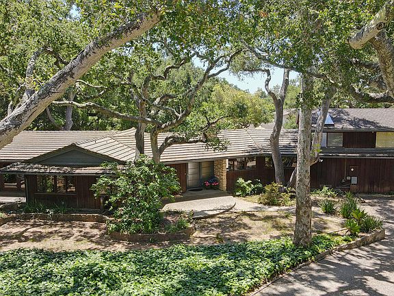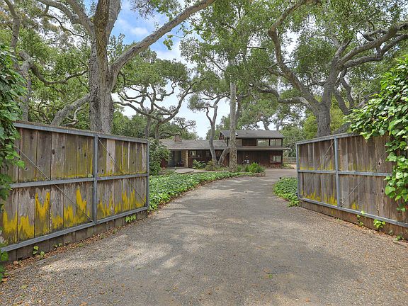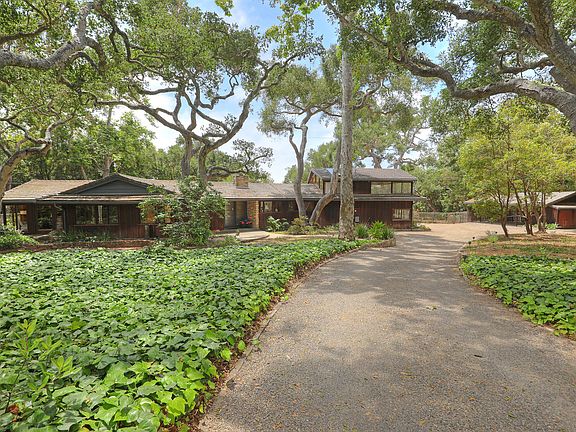 Unique Redwood Home in a serene setting located in Montecito. This spacious 4-bedroom, 4-bathroom home is nestled on a peaceful, tree-lined street. The architectural design features high ceilings and an abundance of large windows, allowing natural light to create a warm and inviting atmosphere that truly connects you to the outdoors. Hardwood floors extend throughout the home, complemented by a spacious open floor plan and built-in cabinets that provide both style and functionality. The layout is perfect for both entertaining and everyday living. Step outside to discover a private, one-acre backyard adorned with various fruit trees and framed by majestic oak trees, creating a wonderful outdoor space that invites relaxation and outdoor activities.