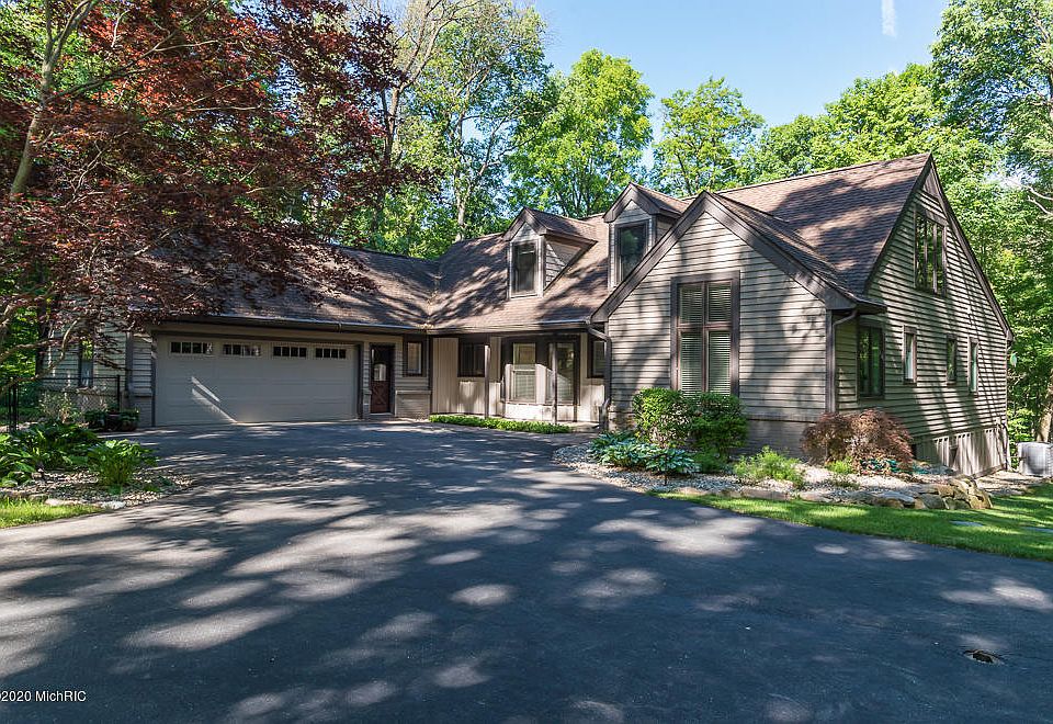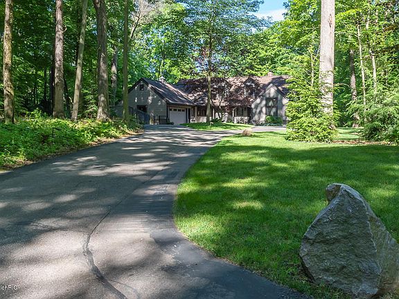 Lovely tranquil setting at the end of a cul de sac, this 4 bed 2.5 bath walkout sits on almost 1.4 wooded acres. Oshtemo twp. taxes and KPS qualified. All living could be done on the main floor w/ the master suite, conv. located laundry, den w/ 14' ceilings, Large LR w/ vaulted ceiling open to upstairs, plenty of windows, a brick FP and also open to the eating area & beautiful 4 season room w/ gas stove. FDR w/ bay window, large kit. w/ corian counters, stainless appliances- including new wall oven being installed soon. Completing the main floor is the 1/2 bath, & plenty of closet space. Upstairs you'll find 3 generous size bedrooms & a family bath. The lower level also has finished family room w/ FP large rec area, plenty of storage & a great set up for workshop w/ central suction built in. French doors lead to the patio & side fenced yard w/ lovely water feature. Home backs up to privately owned land-locked acreage w/o access for develop