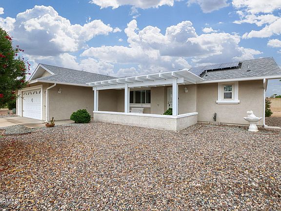 Discover your new retreat in Sun City West! This beautifully maintained 2-bedroom 2-bathroom home is located in a peaceful cul-de-sac, on a large lot spanning 16,268 square feet! Step inside to a thoughtfully situated split floorplan, the kitchen featuring updates such as granite countertops along with newer dual-pane windows & shutters throughout! The primary bedroom offers comfort and convenience, while the second bedroom includes a murphy bed, making it ideal for guests or a dedicated home office. An enclosed patio creates space for entertaining. Additionally, this property has a low monthly solar lease assumption, allowing for more savings! A 5-Year Home Warranty Included!