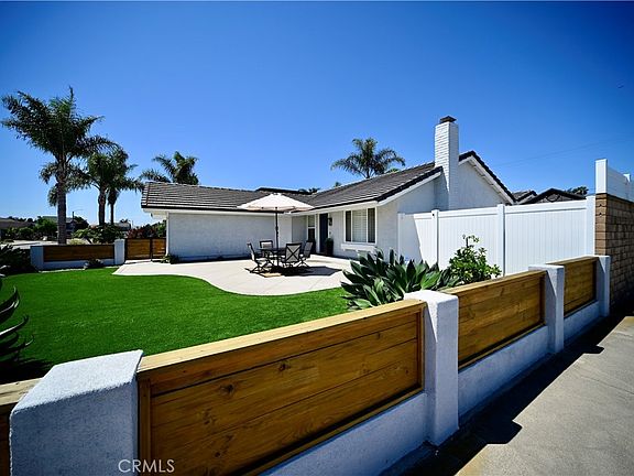 Gorgeous Single-Story Coastal Home in South Huntington’s La Cuesta Neighborhood with resort style amenities. This stunning home features an open concept floorplan with soaring ceilings and a skylight that provides an abundance of natural light. Beautifully remodeled kitchen with Quartz countertops, an island bar with breakfast counter, Bosch range/oven with custom hood and matching Bosch dishwasher are both elegant and functional. The entire home features new luxury vinyl floors installed in the last year, dual pane windows with custom shutters, upgraded fireplace mantle, recessed lighting and luxury ceiling fans throughout the home. Towards the rear of the home is a great room with two oversized tri-panel sliding doors for that indoor outdoor living experience. Spa tub can be accessed from both the great room or a private door through the primary ensuite bath. A separate outdoor shower with upper and lower heads is perfect for a quick rinse after a surf or for pet bathing. The tastefully renovated bathrooms include a custom walk-in shower with mosaic-pearl flooring with glass enclosure in the primary bath and the hall bath boasts a stylish vanity and faucet with eclectic flooring and a re-glazed bathtub. The tankless water heater and furnace have been relocated into the attic to maximize living space. The home features a 50 year slate roof, whole house re-piping, rain gutters, drought resistant succulent landscaping and artificial turf for low-maintenance.