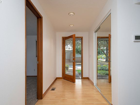 Immaculate 2 bedroom 2 full bath house on corner lot. Lots of cross ventilation with new windows, family room has ceiling to floor windows looking out at tree filled park. Property borders North Gresham Park. Primary bedroom is large with very big walk in closet, vanity and storage in primary bathroom. Covered patio and RV parking behind fenced yard. Rainbird sprinklers in front yard. Gas furnace and AC. Kitchen has cabinets galore for all your kitchen appliances and gadgets. New paint interior and exterior. This is a must see!!! Patio furniture is included in sale.