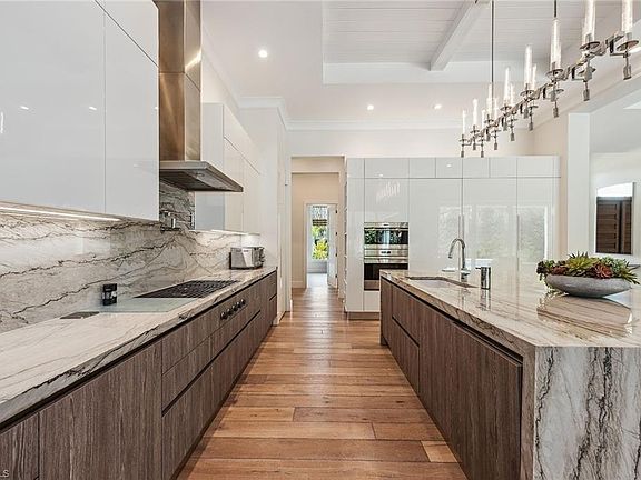This Naples home blends European craftsmanship with modern luxury. The Italian-designed kitchen by Idea Group boasts highest-grade quartz countertops, Wolf and Sub-Zero appliances, a double oven and an oversized walk-in pantry, ideal for cooking and entertaining. Inside, Rolf Benz indoor furniture and Restoration Hardware lighting create an elegant atmosphere. Each of the four bedrooms and 4.5 baths features unique design elements, with Porcelanosa finishes in the baths adding a touch of luxury. The outdoor space is designed for relaxation and entertaining, with rolldown screens for privacy, and a stunning pool with fire and water features. Restoration Hardware outdoor furniture completes the setup for alfresco living. The home is equipped with a Pentair water filtration system and a 1,000-gallon propane tank for convenience and efficiency. Additional highlights include a wine cooler, powder room and a three-car garage. This home offers high-end design and thoughtful details, making it ideal for those seeking a refined lifestyle in Naples. Don't miss the opportunity to see this exceptional property!