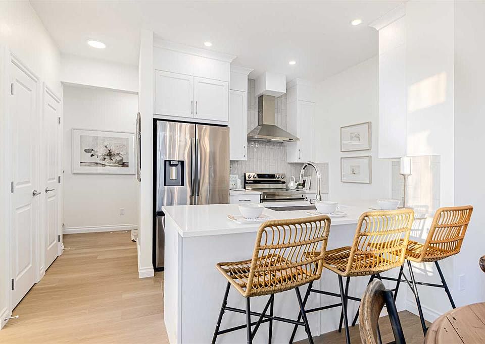 Rooftop patioAttached double garageOpen-concept livingStone countertopsStainless steel appliancesFull-height cabinetryLarge island with seating