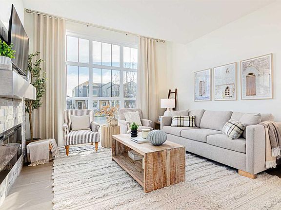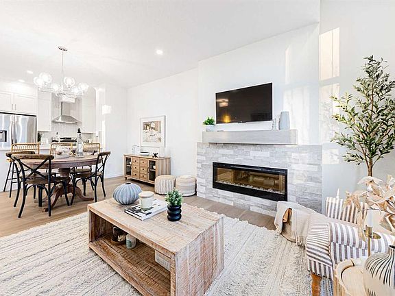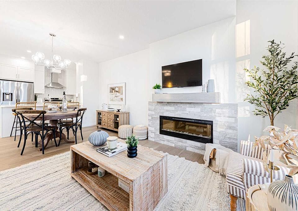 Welcome to the Jasper by Genesis Builders, a beautifully designed townhome with no condo fees in the heart of Bayview. Offering 1,354 sq. ft. of above-grade living space, this home combines modern finishes, functional design, and unique features like a rooftop patio and a 20' x 22' attached double garage. The basement includes 9' ceilings and is ready for your ideas. The main floor offers open-concept living with an inviting layout that’s both bright and practical. The kitchen is finished with stone countertops, stainless steel appliances, full-height cabinetry, and a large island with seating, flowing into the dining area and living room. A feature fireplace adds warmth and style, making the space perfect for both entertaining and everyday living. A half bath, storage, and direct garage access complete this level. Upstairs, the primary suite includes a walk-in closet and private ensuite with a large tiled shower. Two additional bedrooms, a 4-piece bath, and a conveniently located laundry space complete the upper floor. The rooftop patio above the garage provides a private outdoor retreat for relaxing or entertaining. Bayview is one of Airdrie’s most exciting communities, with pathways, playgrounds, an outdoor amphitheatre, basketball courts, and tennis courts that convert to a skating rink in the winter. With easy access to schools, parks, and the canals, Bayview offers both lifestyle and convenience. *Photos are representative colors and finishes may vary. Area size was calculated by applying the RMS to the blueprints provided by the builder. Similar Jasper model is currently available at 2150 Bayview Drive. Taxes to be assessed.