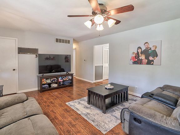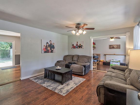 Welcome to this charming 3 bedroom, 2 bathroom home nestled in the heart of Newburgh, IN. With numerous updates and spacious living areas, this home offers a private and tranquil setting that is sure to captivate you. As you approach the property, take note of the inviting brick and wood exterior, along with the expansive driveway and attached one-car garage. The well-maintained landscaping and covered front porch add to the curb appeal, creating an inviting first impression. Upon entering, you'll be greeted by a spacious living room adorned with large windows, allowing for an abundance of natural light to brighten the room. The hardwood flooring adds warmth and elegance, while a ceiling fan enhances comfort during those warm summer days. Adjacent to the living room, you'll find a generous family room with closet storage and another ceiling fan. This versatile space can be tailored to your needs, whether it be a cozy entertainment area or a second dining space. The heart of this home lies in the eat-in kitchen, which seamlessly connects to both the living and family rooms. The kitchen boasts stainless steel appliances, stone countertops, a beautiful tile backsplash, and modern finishes, offering a stylish and functional space for culinary endeavors. With plenty of cabinet space, organizing your kitchen essentials will be a breeze. The primary bedroom features soft carpeting, generous closet space, and a ceiling fan for added comfort. The en-suite bathroom boasts a convenient stand-up shower. The two additional bedrooms also feature comfortable carpeting, ceiling fans, and ample closet space to accommodate your storage needs. A second full-sized bathroom with a shower tub combo serves the remaining bedrooms and guests alike. Access to the backyard is conveniently located through the kitchen, leading you to an open back patio where you can enjoy outdoor dining, entertaining, or simply unwind in the fresh air. The large fully fenced-in backyard ensures privacy and safety, while a storage shed offers additional space for storing outdoor equipment and tools. Don't miss the opportunity to make this house your home and experience the comfort and tranquility it has to offer!