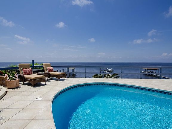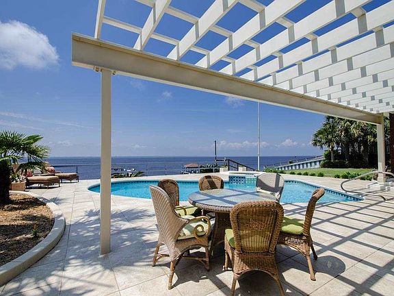 Waterfront estate in a beautiful picturesque setting. . . A cascade of mature oak trees will welcome you to this meticulous home. Located on over one acre with a 27 foot elevation, this residence offers all the amenities of executive waterfront living. As you enter, you will enjoy breathtaking views of the pool and spa that overlook the Pensacola Bay. The pool offers plenty of cool deck area for waterfront entertaining. After dinner, hop in your boat for a sunset cruise! There is a dock with two boat lifts! The current owner has made a vast array of updates and upgrades throughout the home. The floorplan will accommodate a large family or an abundance of house guests. The kitchen offers an island, pullout refrigerator drawers, free standing icemaker and granite counters. The master suite area is amazing! Wake up to gorgeous waterviews. The over-sized closet system is sure to please any fanatic, and there is a small office area. The master bath upgrades include granite counters, separate shower and stone work. For additional entertaining, there is a game room with a wetbar. Other features include a whole house generator, hurricane panels, a four-car garage and a huge walk in attic. This property is one of the larger waterfront parcels in Gulf Breeze offering a nice elevation, plenty of privacy and mature trees.
