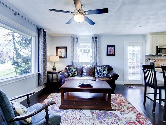 Great 4 bedroom, 2 full bath home with open floor plan, updated kitchen and bath, beautiful hardwood floors, new carpet, replacement windows, gas log fireplace in family room and four seasons room all on .61 acre.