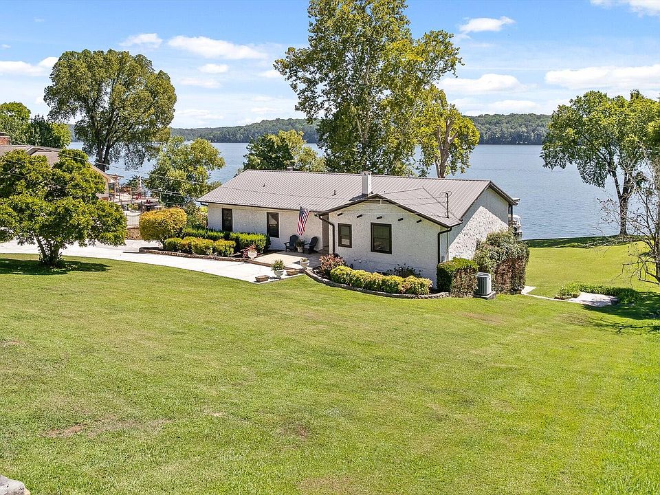 Main channel Chickamauga lakefront paradise on the TN River in this stunning four-bedroom, three-bathroom, 3 car garage home offering 2,960 square feet of open concept living. This exceptional property sits on a generous double lot with direct waterfront access, making it perfect for those who dream of sunrises every morning. View across the River/Lake is TVA land, so it will likely never change. Exterior of home was redone in '21 including: 60yr metal roof, all vinyl windows & 3 sliders, paint, and gutters w/guards, front door.