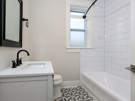White quartz countertopsParking in the backNewly updated bathroomStainless steel appliances