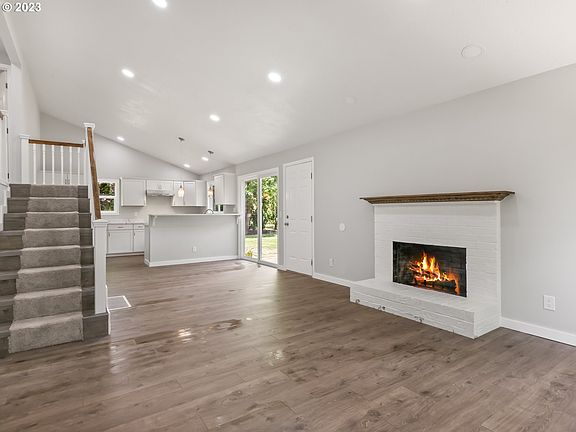 - Features: Fireplace, Great Room, Living Room Dining Room Combo, Sliding Doors, Updated Remodeled, Laminate Flooring, Vaulted Ceiling