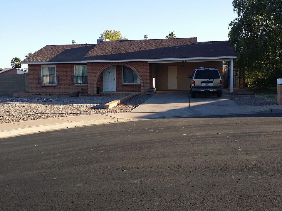 For rent Single family home on large corner lot in quiet cul-de-sac, in Mesa (Gilbert rd. and US60) 3 bedroom 2 bath, 10'x20' bonus room with large sunroof, 2 car covered attached carport, approx. 1400sqft, block home with block fencing. Large shed, and gazebo in backyard. Yard maintenance included in rent. Remodeled. Great location, close to Us 60, shopping, quiet neighborhood. 12 month lease, $1300/month. Available December 1st. Show by appointment only. First and last month rent, and 1/2 month security deposit due at lease signing. For more info and appointment, call or text; Sofia 480-two-four-two-8422 Yard maintenance included in rent.