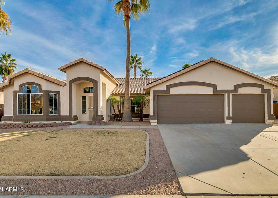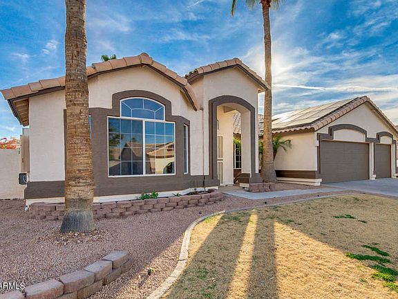 Gorgeous, updated 4 bedroom 2 bath home with large 3-car garage in Cottonwood Crossings situated on a quiet Cul-de-sac near a park right in the heart of Gilbert! Featuring a multi-purpose formal living room/den/office, formal dining room, and open family room. Fresh interior paint, vaulted ceilings, laminate/tile/carpet flooring, wired for surround sound in family room, patio, & garage. Kitchen flaunts beautiful granite counters, white painted cabinets, SS/black appliances, wrap-around breakfast bar, 2 pantries, & breakfast nook. Master suite has bath with big walk-in shower, double sinks, tiled counters/shower wall, & walk-in closet. Pull-down Murphy bed in bedroom 3 is perfect for guests. Energy-efficient with ceiling fans, sun screens, & solar panels. Mature landscaping, built-in BBQ, extended length patio, play pool w/water feature.