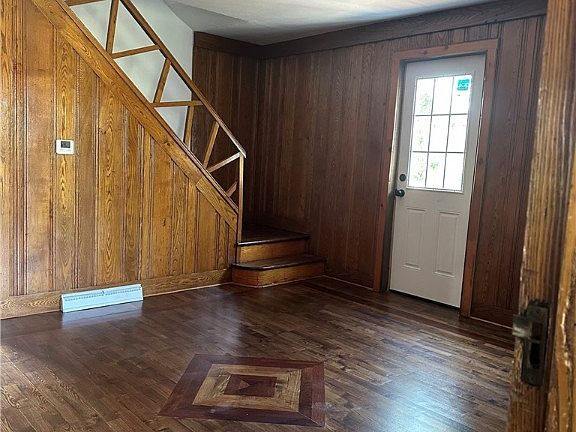 Quintessential stone home on 1.07 acres in Finleyville, Washington County. This charming home features new wood floors throughout the first floor, a spacious living room with a beautiful decorative stone fireplace, and a formal dining room with a stunning restored wood inlay. The renovated kitchen includes all-new appliances and a cozy nook area. Upstairs offers three large bedrooms, a full bath, and a spacious linen closet for extra storage. The basement includes multiple root cellar rooms and space for a workshop or craft room. Step out onto the brand new back deck and enjoy peaceful country views—complete with your own creek. For peace of mind, this house has a brand new metal roof. A perfect blend of timeless character and modern updates in a serene setting. A must-see!