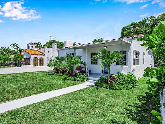 Step into this classic Art Deco home in highly desirable Shenandoah. Vaulted ceilings and abundant natural light create a welcoming atmosphere. The sleek kitchen boasts built-in counter seating & modern appliances. Move-in ready with a renovated bathroom, new AC & a large backyard, this home offers both comfort & potential. A spacious, sunlit foyer can serve as an office space. The detached garage also offers many possibilities. Outside, a private tropical oasis awaits, complete with mango & sour orange trees. Take a short stroll to newly renovated Shenandoah Park with state-of-the-art aquatic center, playground & sports fields. Prime central location with easy access to Brickell, Coral Gables & Coconut Grove. Live a peaceful yet dynamic lifestyle in the heart of the city.