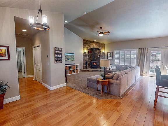 Welcome home!! A modern, move in ready home in the pines. As you enter this beauty, you will love the open living, dining and kitchen. This large and spacious room is bright and the cathedral ceilings give an even better feel. Entertaining is a must with the large kitchen with gas cooktop, double ovens and island. Plenty of storage for all you need in the pantry along with the spacious laundry room. On one side of the house is the incredible master suite. The walk in closet, built in drawers and master bath complete this side of the home. The master bath has a wonderful soaking tub along with a separate shower with dual shower heads. As you head down to the other side of the home you will find an office and two more bedrooms along with a bathroom. The garage is oversized and has an additional room for added storage. The backyard is fenced with a great area for outdoor furniture. Bring the chickens as there is a coop waiting for you too! The beautiful deck that wraps the house will show you views of the Crystal Falls lake. Crystal Falls Ranch provides many amenities including a clubhouse, fitness area, tennis courts, community garden, stables and more.