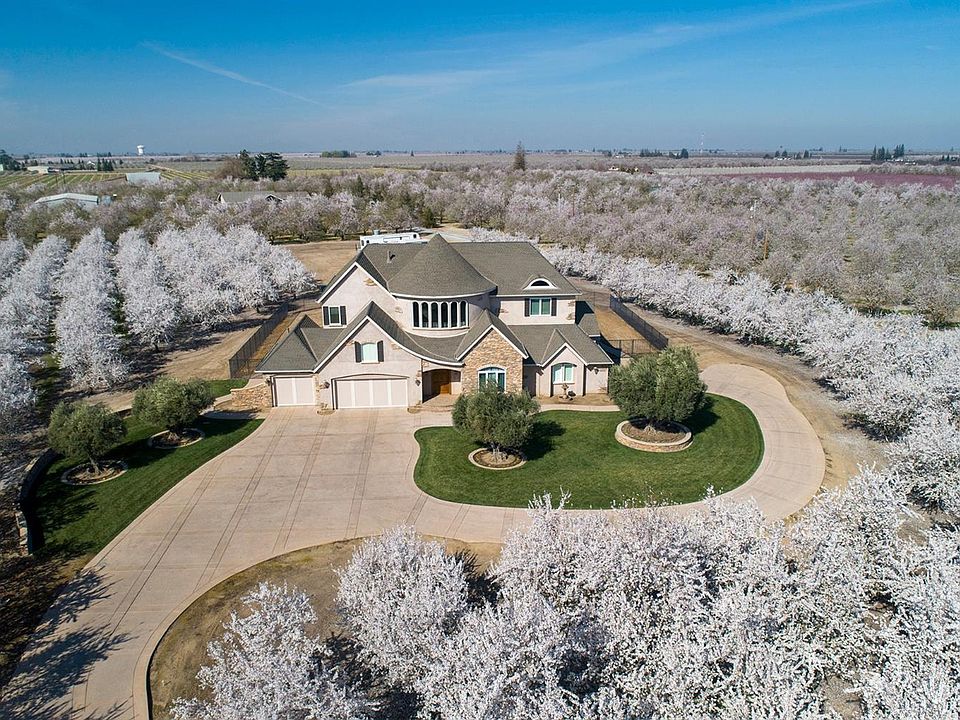 Fabulous Ripon country estate on approx 10 acres, planted in almonds. Magnificent home with over 6000 sq ft of excellent craftsmanship. Step inside the awesome rotunda type entry with double staircase leading to 4 bedrooms, 2 jack-n-jill baths, & laundry room. Downstairs features a grand master suite, formal dining, theater/multi-purpose room, family room and gourmet kitchen, office, & mud room. Beautiful arched doorways and doors complement 10' and 12' ceilings and custom hand troweled walls. Fireplaces grace the family room, dining room and master suite. Cherrywood cabinetry with walnut stain throughout. Other custom features include 5/8 inch drywall for sound and insulation, maple hardwood flooring, marble flooring, 4 heat/air units. MID power f. 4 car garage (a 3 car plus 1 single). Orchard with micro sprinklers. 400 amp 3 phase at well (for future shop). Rare opportunity to live luxuriously in a serene country setting. Upgrades to this home completed Feb 2020. See virtual tou 2020-07-27