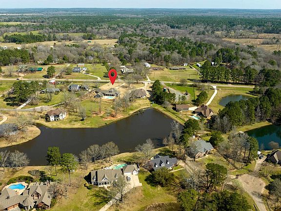 Stunning Custom-Built Home with Guest House on 2.35 Acres Overlooking the Water Discover luxury living at its finest in this one-owner, custom-built estate with stunning views of a lake/pond. This immaculate home offers a comfortable open-concept design with exquisite craftsmanship throughout. The main house (3,042 sq. ft.) features 3 bedrooms, 3.5 baths, a large study with closet, and a striking iron-exposed staircase. The chef’s kitchen boasts a charming brick feature wall, walk-in pantry, double-ovens and high-end finishes. The primary suite downstairs is a private retreat, complete with a brick accent wall, vaulted ceiling and spa-like ensuite. The inviting living room centers around a cozy fireplace, perfect for relaxing evenings. Two bedrooms upstairs each with private bathrooms and a built in hallway bookcase niche for reading or crafts. The guest house (468 sq. ft.) is a private haven, featuring 1 bedroom, 1 full bath, and a spacious layout—ideal for guests or a mother-in-law suite. Step outside to your outdoor paradise—a heated mineral pool with a hot tub and waterfall feature, two outdoor fireplaces with gas logs, and expansive covered porches for year-round enjoyment. The property extends into the lake/pond, allowing you to fish, paddleboat, or canoe right from your backyard. Additional highlights include: - 3-car garage with portico - Whole-house generator for peace of mind - Full sprinkler system for effortless landscaping - Surrounded by beautiful homes in a highly desirable area - Less than 5 years old—move-in ready! This gorgeous property offers an unparalleled lifestyle—serene, luxurious, and designed for both comfort and entertaining. You’ll never want to leave! * Schedule your private showing today! This home is occupied and requires an appt. It is located on FM 449 just past the entrance to Honeysuckle Farms.