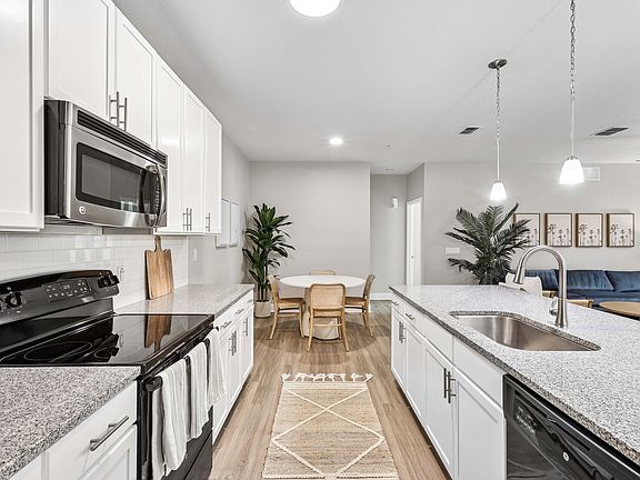 Granite countertopsRefreshed gfi outletsPlush carpetingBuilt-in usb charging portsWarm tan wallsModern kitchenSleek vinyl plank flooring