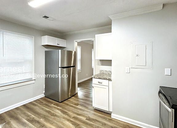 This 3-bedroom, 1.5-bathroom single-family home offers a comfortable and practical living space with 1,442 square feet designed to meet your needs. Equipped with essential appliances such as a refrigerator, dishwasher, and electric range, the kitchen is prepared for daily meal preparation. Stainless steel appliances bring a modern touch, while the wood plank floors emphasize durability and easy maintenance. Central air and heating ensure a pleasant environment year-round, and laundry hookups are conveniently available for tenant-use.