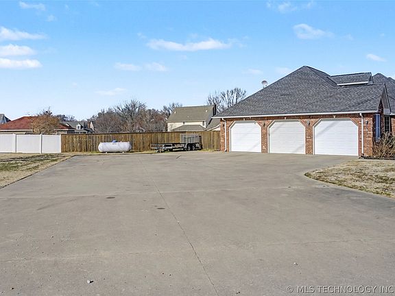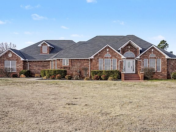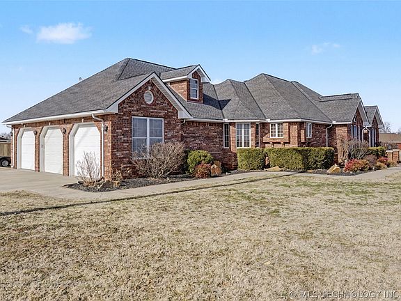 If you've been waiting for the perfect blend of luxury, space, and privacy, this is it. Located in the highly desirable neighborhood of The Meadows just outside of Pryor, this stunning full brick home offers 3 bedrooms, 2.5 baths, and an incredible layout designed for both comfort and entertaining. From the moment you step inside, you'll notice the abundance of natural light pouring through oversized windows, highlighting the vaulted ceilings, elegant crown molding, and fresh paint throughout the home. The spacious living room features a cozy wood-burning fireplace, while beautiful oak wood floors flow seamlessly through the kitchen, dining, and living areas. Updated plumbing and modern lighting fixtures add both style and peace of mind. Step outside to your private backyard retreat complete with a large covered patio overlooking a saltwater in-ground pool (installed in 2020), a built-in fire pit, and an expansive backyard perfect for entertaining. A new fence was built in 2022, and the roof was replaced in 2017, offering long-term durability and value. The oversized 3 car garage provides ample storage, and the luxurious master suite is a true escape with a relaxing jacuzzi tub, and extravagant walk-in shower, and dual walk-in closets. The additional bedrooms are generously sized with large closets as well. As an added bonus, this home quailifies for a USDA $0 money down loan, making it an incredible opportunity to won a beautifully updated property in a quiet, sought-after neighborhood. Call today to schedule your private showing before this one is gone.