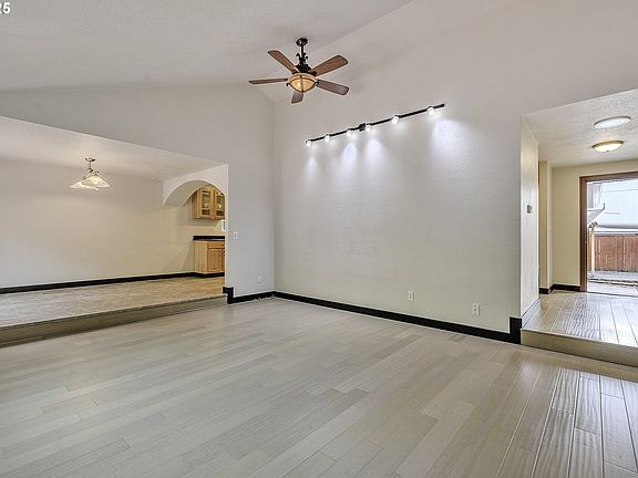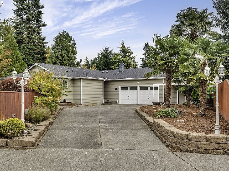 3 bedroom, one-level home backs to green space & The Chieftain/Dakota Greenway Trail, providing a peaceful backdrop. Large windows & solar tubes provide natural light. Spacious vaulted living room w/ceiling fan & large windows opens to the dining room w/French doors to deck. Family room has fireplace & blt-in bookshelf. Kitchen features slab granite countertops, ss appliances & gas range. Primary suite has w-in closet, barn doors & vanity w/quartz countertop. Large fenced backyard w/extended deck, fire pit, water feature & shed. Detached vaulted workshop has electricity, skylights & window A/C unit. Oversized garage w/attached cabinets & shelves. Sprinklers. Roof (2022). Fresh interior paint. Located near schools, shopping, dining, parks, trails and I-5 & I-205 freeway access.