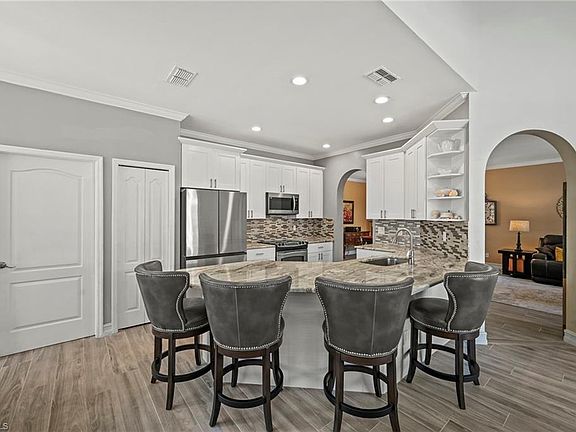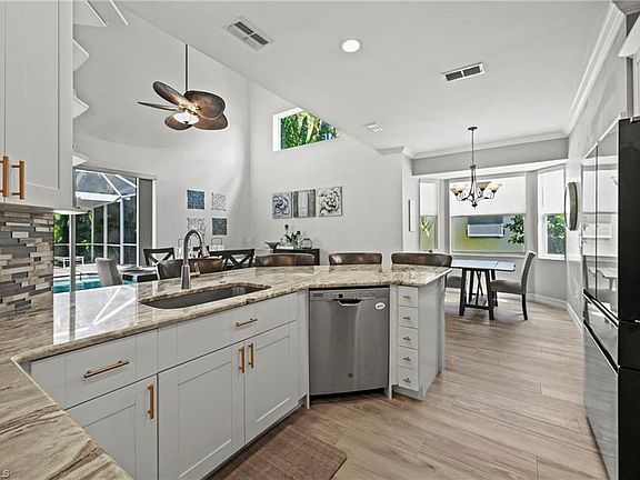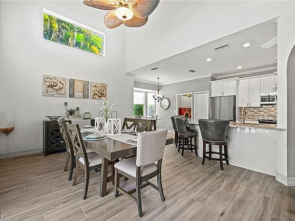This beautifully updated 4-bedroom, 3-bath home offers the perfect blend of comfort, function, and style. The upgraded kitchen features modern finishes and opens to a bright, spacious living area with new plank tile flooring on the first floor and matching luxury vinyl plank upstairs. A first-floor bedroom and full bath make an ideal space for guests or a home office. Upstairs, the primary suite impresses with a luxurious soaking tub, oversized walk-in shower, and custom closet storage. Step outside to your private backyard retreat—an extended paver lanai with a covered entertaining space and sparkling pool. The expanded paver driveway accommodates three cars with ease.  The roof was replaced in 2021 and the AC was replaced in 2022.    Located in the gated golf community of Stoneybrook, residents enjoy low HOA fees, top-rated schools, and a prime Estero location close to shopping, dining, and RSW Airport. Families will love the private entrance to Pinewoods Elementary and the added advantage of Stoneybrook’s Proximity 1 school zoning.