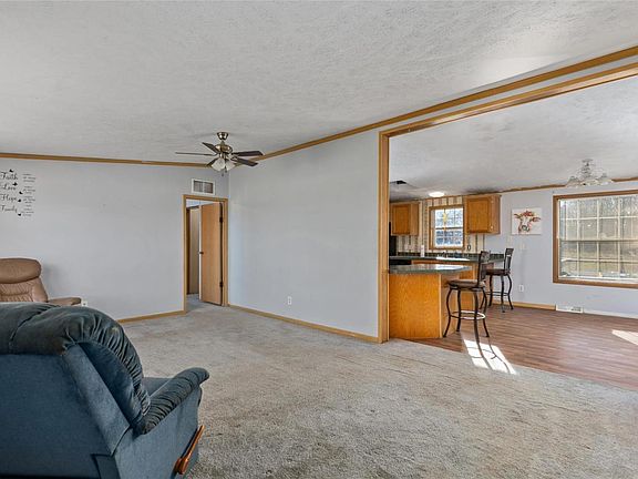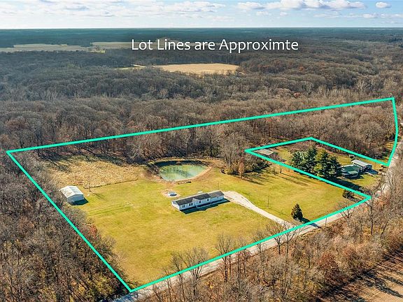 14.4 Acres of Country Living in a 3 BR with 2 1/2 bath home. Home is located on wooded lot with a private pond. Home has large kitchen with built in dining area. Kitchen has breakfast bar. A formal dining room is separate from kitchen. A large living room with plenty of space for different design layouts. Master Bedroom has large walk in closet with master bathroom. Master bath has jacuzzi style tub with separate shower and double sinks. 2 large bedrooms are located on opposite side of house for privacy. Bedrooms are both great sizes for furniture. A full bath separates these bedrooms. Main floor laundry. House has its own office with built in desk and cabinets. Enter through garage to a mud room and another small 1/2 bath. Property includes a large pole barn located with easy access from the road. Large 2 car attached garage. Property can be used for hunters, fishing and a place to raise horses or animals.