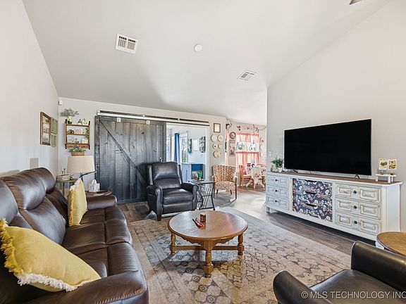 Welcome to your Claremore getaway on 2.7 peaceful acres. This updated 3-bedroom, 2-bath home offers roomy bedrooms, great natural light, and a comfortable layout that fits everyday living and entertaining. The kitchen and both bathrooms have been recently updated, and the home features updated vinyl windows throughout plus a new roof for peace of mind. The standout of the home is the large sunroom stretching across the back—lined with windows and perfect for gatherings, plants, or just soaking in the views of your land with your morning cup of coffee. Outside, the property is set up beautifully for anyone wanting space to spread out. There's a separate workshop for projects or storage, a two-car garage with an additional carport, and a huge chicken coop ready to go for a hobby farm. Plenty of room for gardens, animals, or whatever you’ve been dreaming up. A great blend of updates, functionality, and acreage!