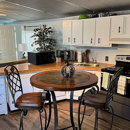 Mobile includes large storage shed . New flooring throughout, bathroom , kitchen sink. . Roof has sealant . Exterior has a 20 year waterproof. Paint 2022. 2 window air conditioners new 2025 . Well maintained
