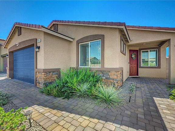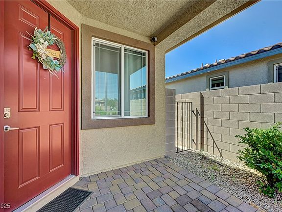 This property is currently listed for short sale and requires bank approval. The asking price is set below the market value. This charming single-family home in Henderson is equipped with a solar system, providing energy savings from the moment of purchase. Solar panels are included. Featuring 10' ceilings throughout. The kitchen boasts beautiful dark mahogany cabinets with handles and stainless steel appliances. A spacious island is located in the great room, ideal for family gatherings and entertaining. Every window is equipped with security locks for added peace of mind. Tile flooring is installed in major traffic areas and two bedrooms. The backyard covered patio features fans and remotes for comfort. Enjoy the scenic view of the mountains behind the home. A sink is available in the laundry room. The community offers parks and walking trails for outdoor activities with pets.