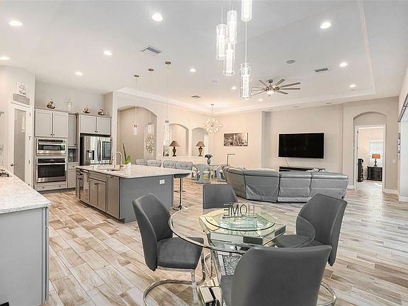 Exquisite Modern Pool Home with Luxury Upgrades in Gated Lake Preserve Community. Welcome to Lake Preserve, a boutique, gated community of just 134 homes, where privacy, elegance, and Florida’s resort-style living meet. This modern 4-bedroom, 3-bath home with a heated saltwater pool has been meticulously designed with countless upgrades and offers the perfect blend of style, comfort, and functionality. The seller is highly motivated, presenting an incredible opportunity for buyers seeking luxury and value in today’s market. From the moment you arrive, you’ll be captivated by the striking curb appeal, clean architectural lines, and a lushly landscaped entrance that sets the tone for what’s inside. Step through the door and experience 12-foot ceilings, expansive living spaces, and abundant natural light streaming through impact-resistant windows and doors. The open-concept floor plan creates an inviting flow, perfect for both relaxed living and entertaining. At the heart of the home lies the chef’s kitchen, a dream for culinary enthusiasts and entertainers alike. Featuring elegant quartz countertops, premium built-in appliances, a walk-in pantry, and a generously sized oversized kitchen island, it’s the perfect space to gather with family and friends. The kitchen seamlessly connects to the great room, where sliding pocket doors open to reveal a screened extended lanai and sparkling heated saltwater pool. With pre-plumbing ready for an outdoor kitchen and fruit trees enhancing the backyard, this space is designed for year-round Florida living. The private primary suite is a serene retreat with dual sinks, an oversized walk-in shower, and a spacious custom-built walk-in closet. The split-bedroom layout ensures maximum privacy for family and guests, offering comfort and flexibility for a variety of living needs. This home has been thoughtfully upgraded with no carpet throughout, ensuring both elegance and low maintenance. Designer finishes, modern lighting, and stylish details elevate the overall feel, making it truly move-in ready. Beyond the home itself, Lake Preserve offers exclusive amenities, including lake access with a private boat ramp and dock, a playground, and well-maintained community spaces. With low HOA fees and no CDD, this neighborhood provides luxury living without the extra costs often found elsewhere. The location couldn’t be better – you’re only 30 minutes from Tampa International Airport, 20 minutes from Tampa Premium Outlets and Costco, and approximately 45 minutes from vibrant Downtown Tampa. Whether you’re commuting, traveling, shopping, or dining, everything you need is within easy reach. This home is the definition of modern Florida lifestyle – offering the space, upgrades, and community features today’s buyers are searching for. Whether enjoying a peaceful evening by the pool, entertaining family and friends, or exploring all that Tampa Bay has for you to see, you’ll find everything here. ? With the seller motivated and a recent price reduction, now is the time to act! Schedule your private showing today and take the first step toward owning this stunning Lake Preserve home. Don’t miss out – opportunities like this are rare!