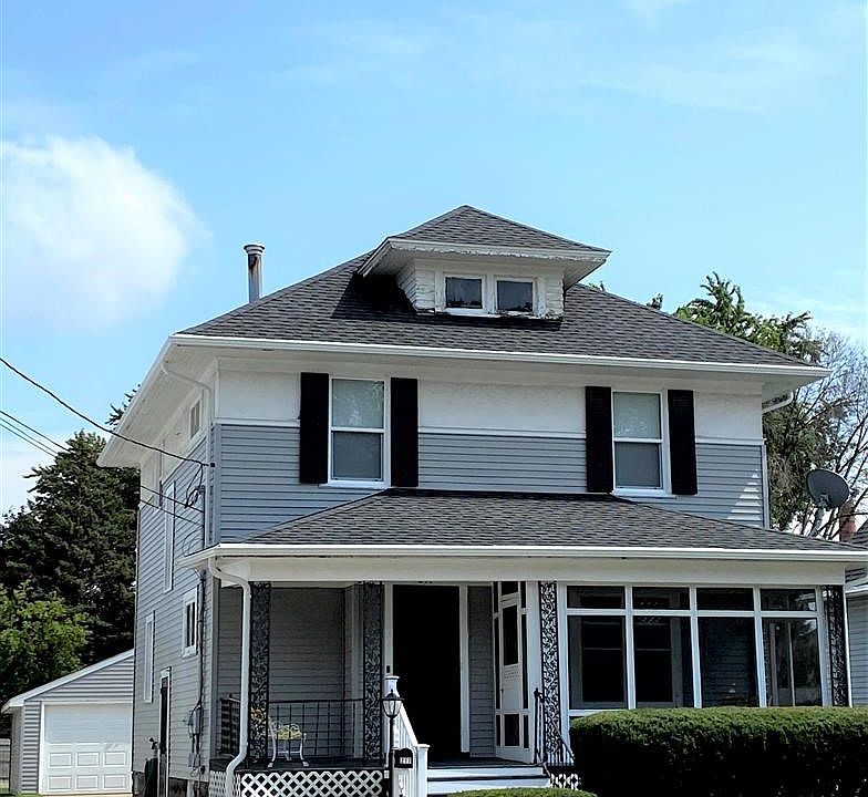 Beautifully updated American Foursquare! Warm & Welcoming Foyer w/refinished Hardwood floor, Arched entry to LR w/HW, original leaded glass window & high ceiling! Dinette area w/leaded glass window & HW leads to remodeled kitchen w/whit cabinets, stainless steal appliances, LTV floor & recessed lights! Tastefully remodeled bathrooms! Second floor consists of 3 bedrms w/refinished Hardwood, natural wood trim & doors, spacious second bath & second floor laundry w/barndoor entry! Two stall detached garage & good size yard! Updated in all the right areas w/Old-world Charm! New windows & siding!