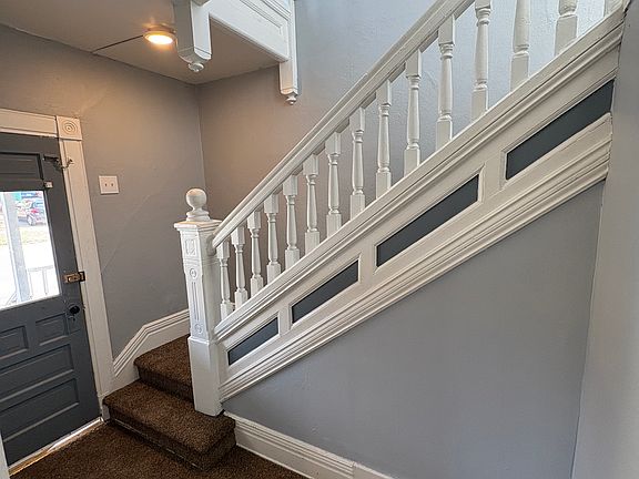 Neutral grey pallet paintLarge front porchTwo separate staircasesRecently upgraded carpetUpdated stoveForced-air heating