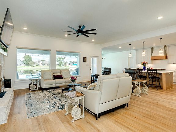 Exceptional 4-bedroom +office, 3-bath home - 3yrs new- offers modern design, high-end finishes, & thoughtful upgrades throughout. Step inside, you’ll notice the open-concept layout, custom touches, & seamless blend of style & functionality. The first floor features a spacious living area w/ a remote-start fireplace (gas logs) and custom remote control blinds. A dedicated office, mudroom, and xtra lg laundry room w/ abundant storage provide everyday convenience. The luxurious primary suite & bath offers a true retreat. The gourmet kitchen & bar area shines w/ polished Cristallo quartz counters, lighted bar counter, & custom lighted coffee bar cabinets—complete w/ a refrigerator for beverages. Upstairs, discover a large game room, walk-in air-conditioned attic w/ added storage, & addl bedroom. Outdoor living is equally impressive. Enjoy a custom-built heated swimming pool & spa w/remote access, custom tile work, sun deck, tanning ledge. PEX piping, tankless H2O heater.