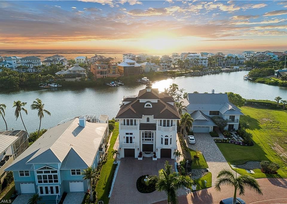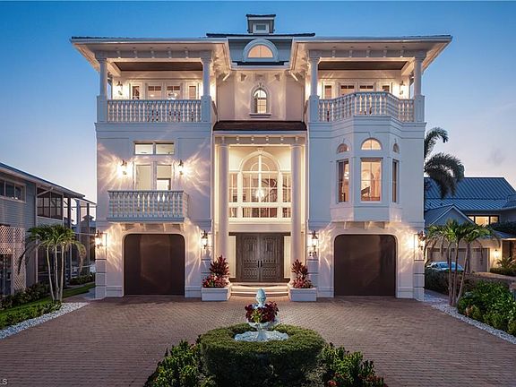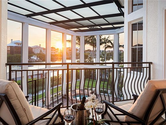 Beautiful home with spectacular Bay views, located in the double-gated “Bayfront” neighborhood of Collier County’s premier “Barefoot Beach” community. Delight in breathtaking wide bay views from nearly every room & prime Western exposure for magnificent sunsets over the pool/spa. Only a 5-minute walk to the beach or a 10-minute boat ride to the Gulf from your dual private boat lift. Built like a fortress, this home is crafted with all concrete construction, hurricane impact windows/doors throughout, and a new roof (December 2020)! Other features include soaring high tray ceilings with Brazilian mahogany, 8 ft mahogany doors, travertine marble floors, and 3 new HVACs. Gorgeous chef’s kitchen features parallel granite islands, butler’s pantry, custom cabinetry, professional-grade appliances with dual Subzero fridge/freezers, Wolf gas stove, 2 ovens, steam oven, dry/wet warming drawer & a wine fridge. Spacious primary bedroom has a spa-like bathroom with a large shower with multiple showerheads, separate tub & walk-in closets. Offers the finest features & finishes such as a whole house water purification system, surround sound, full security system & elevator. Bayfront Dr. homes are built on one side of the street, providing homeowners optimal privacy & views of the Bay.