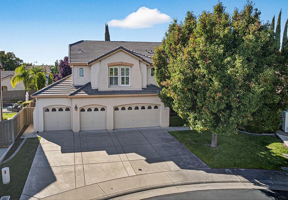 Welcome to this exceptional home in the prestigious gated community of The Rivera in Crocker Ranch. With 3,164 sq. ft. of living space, this 5 bedroom, 3.5 bath residence blends elegance, comfort, and functionality. A full bedroom and bathroom on the main level provide the perfect retreat for guests or multigenerational living. Inside, you'll find fresh paint, abundant natural light, and thoughtful updates throughout. The spacious gourmet kitchen impresses with upgraded GE stainless-steel appliances, two dishwashers, granite-transformation countertops, a massive island with seating, large pantry and a versatile desk area ideal for work or hobbies. The family room is equally inviting with a striking fireplace, while the separate dining and living rooms offer multiple entertaining options. Upstairs features a large loft, generously sized bedrooms with walk-in closets, & plenty of storage. Outdoors, the pool-sized backyard with a covered patio provides endless potential for entertaining or relaxation. Nestled on a quiet cul-de-sac with just four homes, this property also offers a rare 4-car garage, lower Mello Roos, quicker access to Hwy 65, parks, dining, & shopping. Don't forget, utilities are through the Roseville Utility Company, providing valuable long-term savings. A Must see