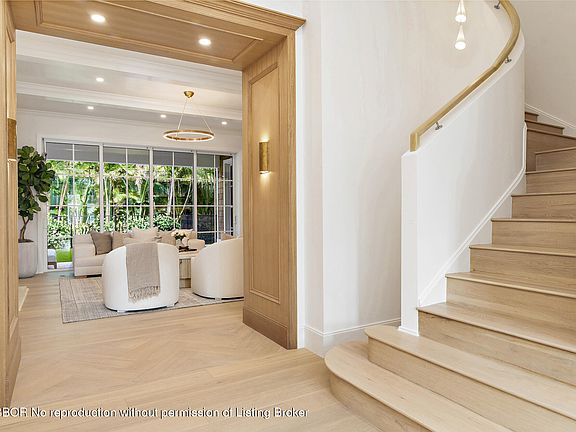 Situated yards away from Flagler Drive and the Intracoastal Waterway rests this stunning new construction home. Featuring 5 bedrooms, 5 full bathrooms and 2 powder rooms, this 5,660 total square foot home was built and designed with extreme attention to detail. Walking in the home, your eyes immediately affix to the incredible millwork. Every inch of this home was designed for the most discerning buyer. The kitchen is a dream come true boasting marble countertops, custom made cabinets, Thermador appliances, a Lacanche Range and a butler's pantry with ample storage space. With a built-in back-lit bar and custom built in shelving, the open concept family/ living/ dining room is both cozy and luxurious.