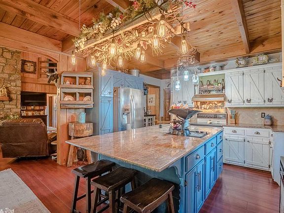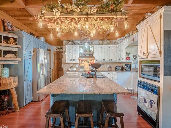 Down on this farm you can "live like someone left the gate open." 48 Acres MOL +/-, cattle guards, huge barn, cross fencing, and a spring-fed pond makes for an animal paradise. This home is amazing from the custom built log exterior and a variety of different wood throughout; to the gorgeous sun room overlooking the in-ground pool; to the huge drive through garage; plus special touches like the fireplace and barn doors. Lots of timber!