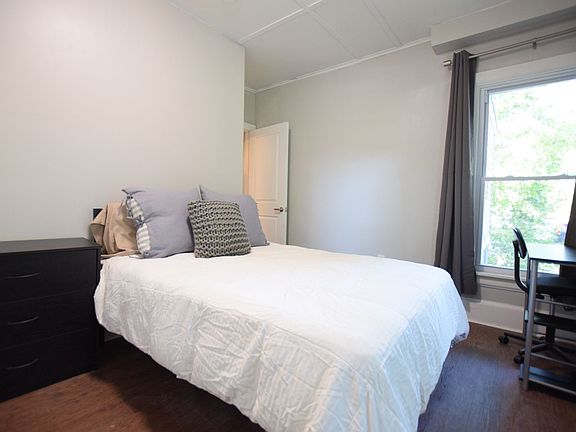 This apartment is the second floor of an up/down duplex and was newly renovated in 2018. There are 3 bedrooms and 2 full bathrooms on each floor. The home features modern finishes like luxury vinyl tiling, stainless steel appliances, and large windows. In the kitchen there are new granite countertops and a dishwasher. The bathrooms are custom-tiled and there is free laundry in the unit.