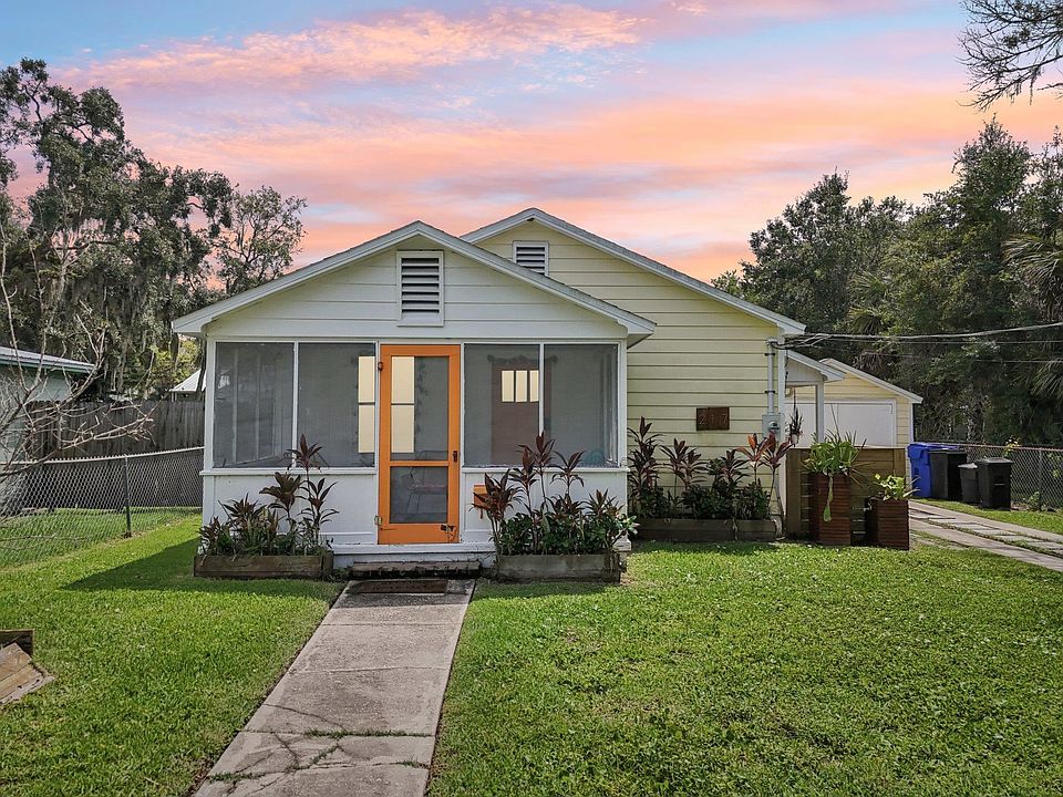 Just minutes from Vilano Beach and historic downtown St. Augustine, this updated 2-bedroom, 1-bath cottage is move-in ready and full of character. An inviting screened front porch welcomes you inside to a spacious living and dining area that flows into the kitchen with refinished countertops and stainless steel appliances. Two generous bedrooms share a full bath with a step-in style shower. The home has been refreshed with a new roof, Hardie siding, HVAC system, updated plumbing, tile flooring, modern light fixtures, a new bathroom vanity, and a new side door. A detached one-car garage and plenty of driveway space provide excellent parking and storage. The large fenced backyard offers even more room to relax or entertain. With no HOA and zoning that allows nightly rentals, this property is also an outstanding investment opportunity. It is currently operating as a well-established and successful short-term rental with reservations already secured into 2026. Future bookings may be transferred to the new owner, offering the option to step right into a proven income-producing venture while enjoying all the benefits of this prime location.