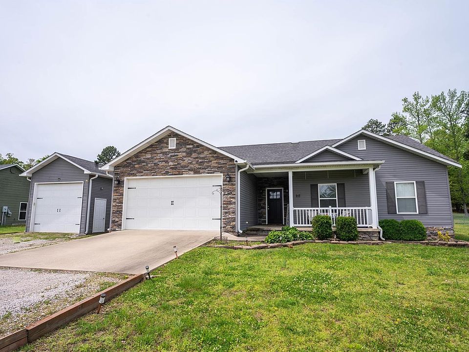 Welcome to 217 Crooked Pine Ct, a stunning 3 bedroom (optional 4th) 2 bathroom home built in 2015, nestled on a .36 acre lot in Poplar Bluff, MO. As you step inside, you'll be greeted by an open floor plan with 9-foot ceilings, and a modern kitchen featuring stainless steel appliances and open shelving, connecting it to the living room with its cathedral ceiling and cozy gas fireplace. The master bedroom is complete with two walk-in closets for ample storage, dual sinks, a tiled shower, and a jacuzzi tub for ultimate relaxation. Step outside to the fenced backyard, where privacy awaits. Enjoy outdoor gatherings on the large concrete patio, under the shade of the pergola, or retreat to the screened-in porch for a peaceful escape. Additionally, a 2-car attached garage and a separate 16x40 detached shop/garage with gas heat and a 10-foot garage door provide ample space for vehicles, hobbies, or storage. This move-in-ready home is waiting for you to create lasting memories!