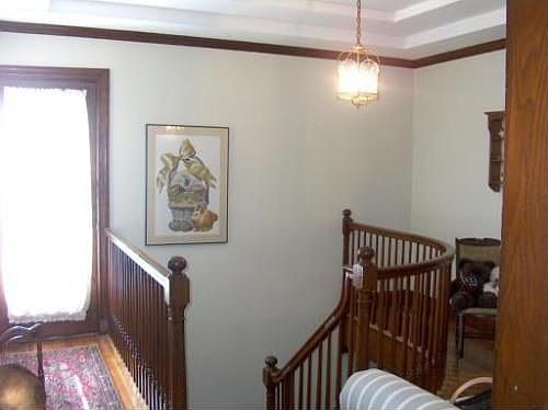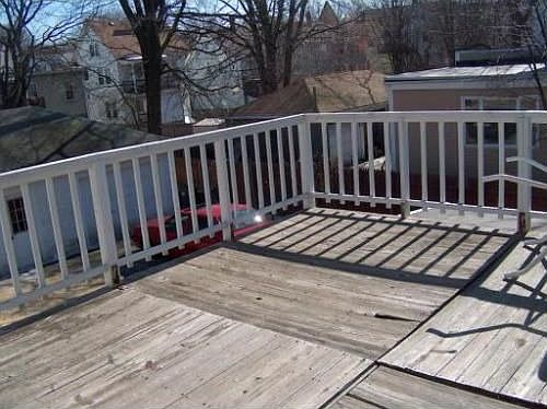 Eat-in-kitchen,ct bath,hardwood floors.Large back deck,coin-op laundry available.2 parking spaces, one is garage.Available May 1st.