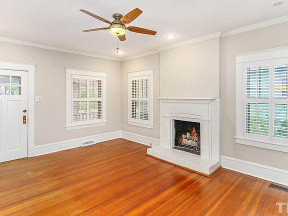 Gas log fireplaceFront porchHardwoods throughout homeExpansive fenced-in backyardSpacious eat-in kitchen