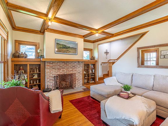 This beautifully restored and updated Craftsman offers the modern comforts you expect while preserving the style and high-end details of its 1910 origins. Sitting on a half-acre lot, it even includes an impressive oversized 3-stall garage (30' x 36') designed to match the home’s architecture. Inside, the main floor features original, restored oak hardwood floors, gorgeous built-ins, and beamed ceilings in the living and dining areas. The living room boasts newer windows and a restored fireplace. The primary bedroom offers a walk-in closet and a ¾ bath. The kitchen blends old and new, updated shaker cabinets and a decorative tin backsplash pair perfectly with a wall of original cabinetry topped with stunning tile mosaic counters. A sunny breakfast nook surrounded by windows makes the perfect start to your mornings. French doors lead to a spacious composite deck ideal for outdoor entertaining. Upstairs, you will find two more bedrooms, a den (currently used as a bedroom), and a four-piece bath with a fabulous green cast iron soaking tub. The bright and light basement offers endless possibilities, complete with a family room, fourth bedroom, full bath, separate entrance, and a second kitchen. Whether for guests, tenants, or a home business, the space is ready to adapt to your needs. Storage is plentiful throughout, making this home as practical as it is beautiful. Truly one-of-a-kind, this is a must-see property where words cannot fully capture its character and charm.