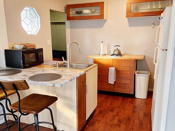 1 bedroom back house with office/ bonus room (possible child's room). Updated and remodeled bathroom. House has bed, chaise, barstools, kitchen items and we are open to discussing furnished arrangements. Close to freeways. We live on the property and utilize the backyard; a good fit is someone who is family friendly and easygoing. Owner pays for water. Renter is responsible for utilities. No smoking allowed. Street parking, no laundry on site. No pets but would consider a small dog if well trained.
