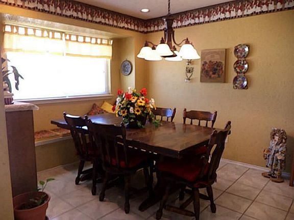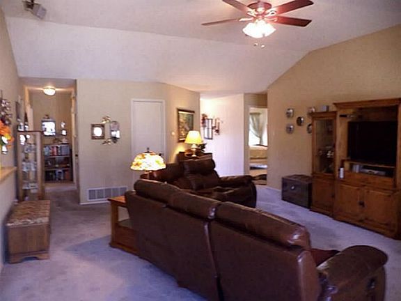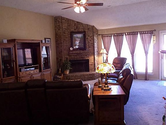 Neutral brick one story. Three beds. Two full baths with high commodes. Large living area - corner FP. 12 x 16 ft Tuff shed in backyard surrounded by sturdy board on board privacy fence. Sprinkler system. Replaced windows with double- paned, energy efficient type. Two inch blinds. Rear entry, two separate car garage. Bay window seat in kitchen eating area and bedroom. Glass storm doors front and back.