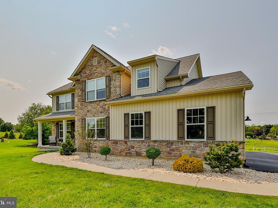 Eagle Point Estates presents a stunning 2600+ square foot custom two-story Colonial home in a prestigious and highly sought-after neighborhood. Nestled on a sprawling 1.36-acre lot in picturesque Moore Township within the Northampton School District, this residence has all the bells and whistles. The expansive custom eat-in kitchen boasts granite countertops, a center island, and stainless-steel appliances, seamlessly flowing into the dining area and family room with a cozy gas fireplace. A first-floor den/office, complete with a glass French door for privacy, adds functionality this level. Upstairs, the Primary suite impresses with tray ceilings, an expansive master bath with a walk-in tile shower, and an enormous 12x8 walk-in closet. Three additional generously sized bedrooms share the main tiled bath. The daylight, walk-out basement, filled with natural light, is ready to be finished, with a roughed in full bath offering endless possibilities. Enjoy breathtaking panoramic views from this exceptional property. Don't let this opportunity you by!